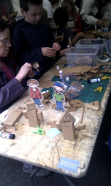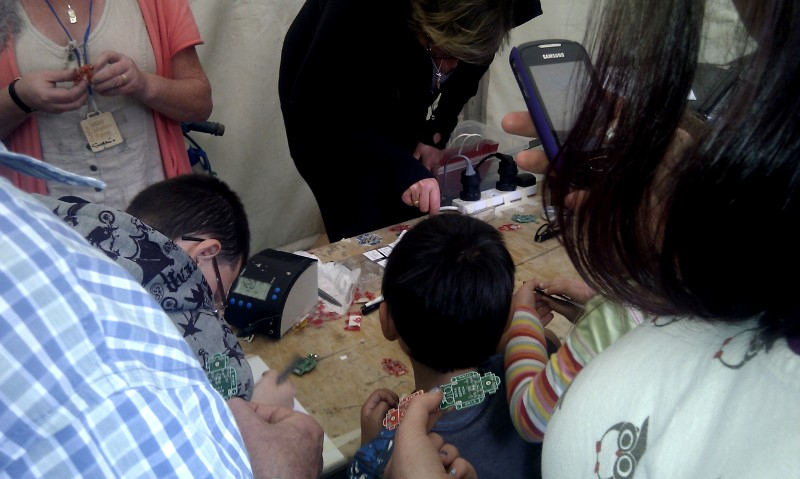 los un poco más grandes también nos divertimos :-D. en la feria se muestra cómo hacer las cosas, digamos que está basado en los principios DIY. Es genial ver a los chavalines soldando sobre un circuito electrónico para hacerse un pin con leds, cómo construir un robot de cartón, cómo crear piezas en una impresora 3D, cómo construir juguetes de madera o cómo hacer un poco de tejido geek. Toda una experiencia y una forma muy interestante de aprendizaje, el basado en el aprender haciendo, en el futuro la educación tendrÃÂa que girar entorno a esos principios, grandes y pequeños en un gran taller donde poder compartir los conocimientos mientras hacemos, pensamos y pensamos haciendo.