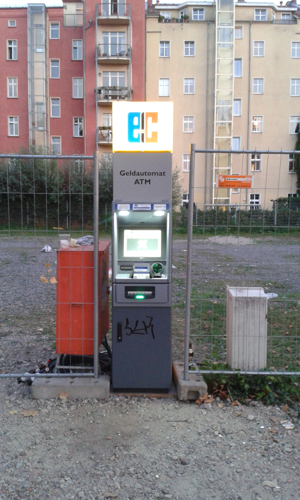 Nada alrededor, en mitad de un descampado, en mitad de una valla, colocan un cajero automático. Prioridades del mundo actual.