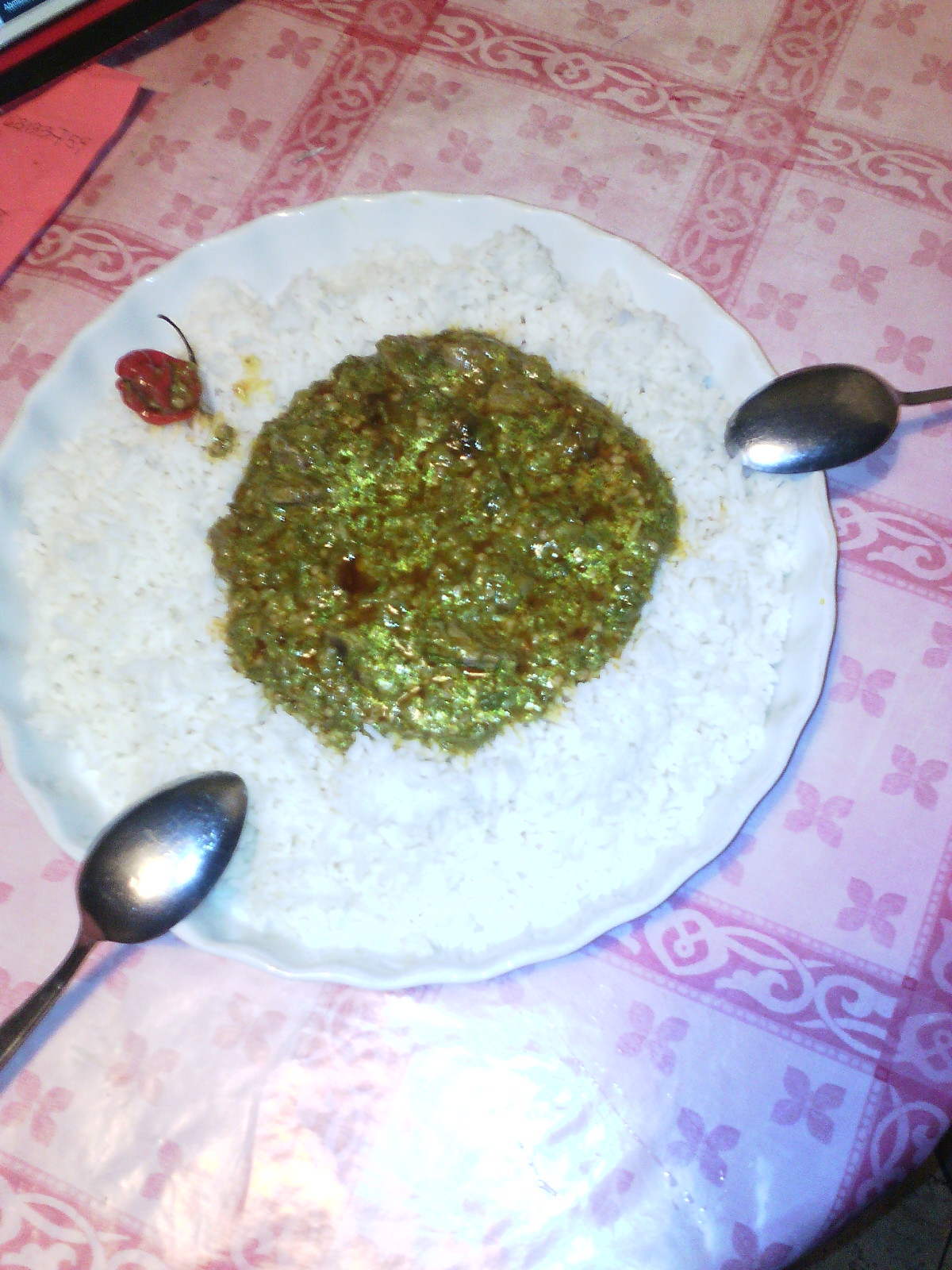 Para servir, cogemos un plato grande, ponemos el arroz blanco cubriendo el plato, en el medio hacemos un huequito donde ponemos la salsa del supercanya, una cuchara por comensal y todo el mundo come del mismo plato, 🙂 más o menos deberÃÂa verse asà…