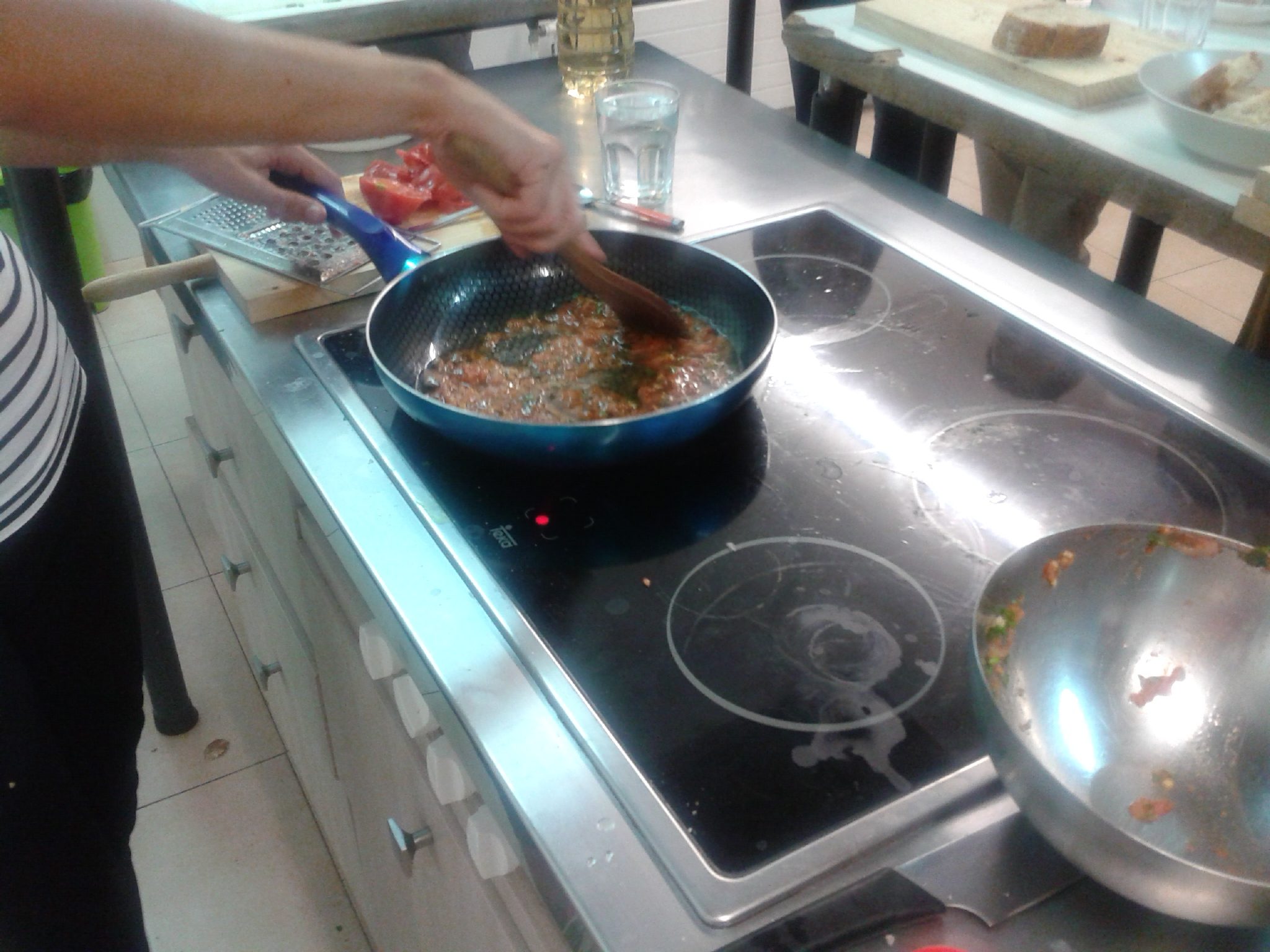 Una vez sofrito, se añade un vaso de agua y se mete el pescado.